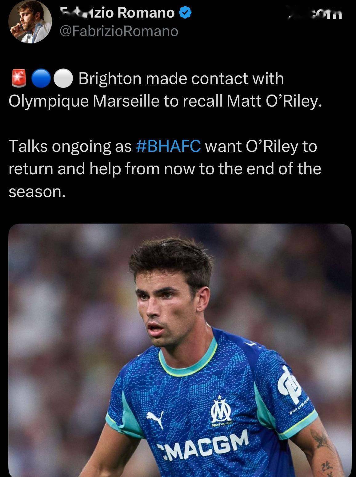 奥赖利紧急回归布莱顿,中场变阵的信号